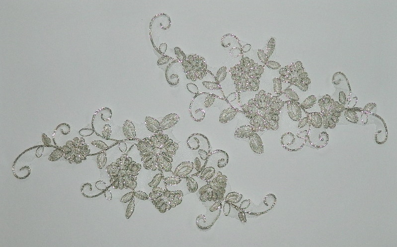 Silver cording edges a muted grey/silver embroidery thread giving them a subtle sparkly effect.